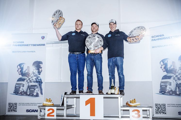 Nicht nur der Deutschland-Sieger Stefan Spengler freut sich auf das Europafinale. Auch der Zweitplatzierte Marcel Kuhnert aus Waldems in Hessen und der Drittplatzierte Christian Töpfer aus Neu Wulmstorf in Niedersachsen dürfen das Finale in Schweden live mitverfolgen. Am 25. Mai entscheidet sich dann, welcher europäische Lkw-Fahrer den Hauptgewinn erhält - eine neue Scania Sattelzugmaschine im Wert von 100.000 Euro.