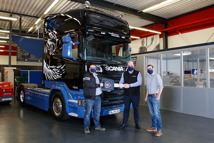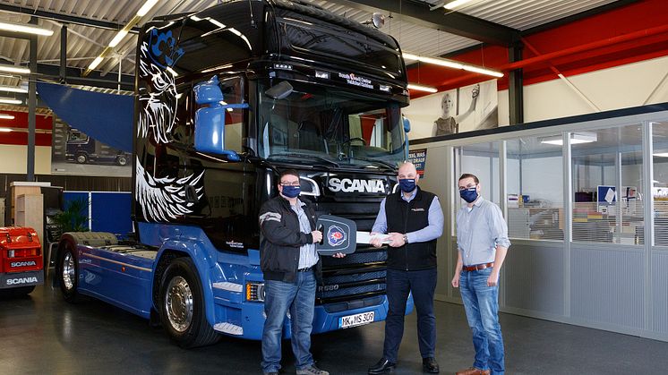 Markus Sallermann, Geschäftsführer von Sallermann Transporte e.K, übernahm am 21. Dezember 2020 nicht nur das 1.400ste gebrauchte Fahrzeug des Used Vehicles Center (UVC) Koblenz, sondern gleichzeitig seinen sechsten Scania Lkw des UVC. Von Oktober bis Dezember 2020 entschied sich der Unternehmer gleich für mehrere Premium Used Fahrzeuge – einen Scania R 450 und zwei Scania R 580 mit V8-Motor. Alle drei Lkw wurden im Rahmen der außergewöhnlichen Used Kampagne erworben. Sallermann profitiert damit nicht nur von einem Kilometerleasing ohne Anzahlung, sondern auch von zahlreichen inkludierten Dienstleistungen.