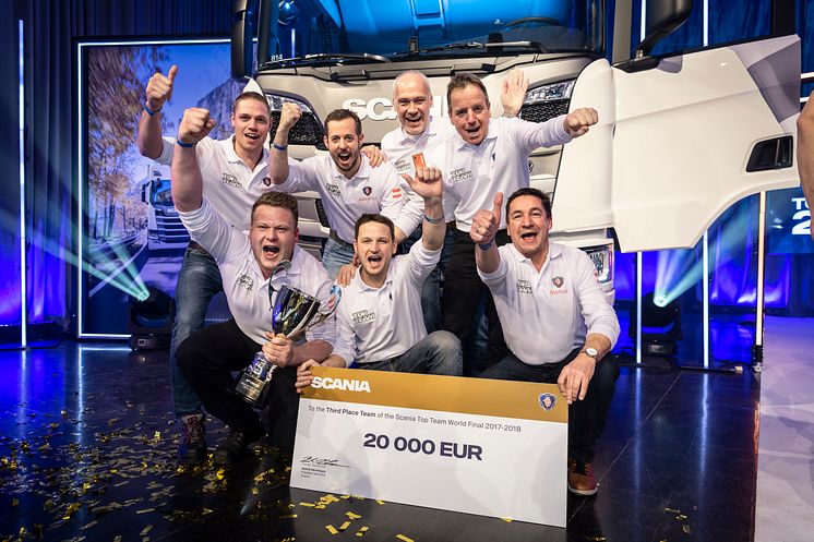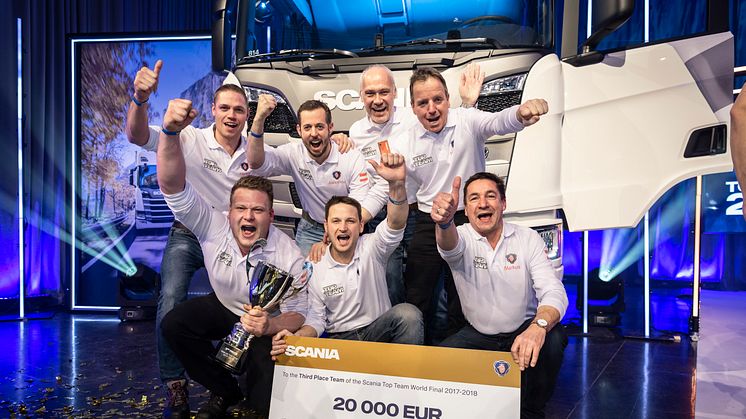 Von über 1.000 Werkstatt-Teams aus 70 Ländern belegte das österreichische Team aus Kirchbichl beim Scania Top Team Wettbewerb, einem globalen Schulungsprogramm mit Schwerpunkt auf Praxis und Theorie, den dritten Platz und erhielt somit ein Preisgeld in Höhe von 20.000 Euro.