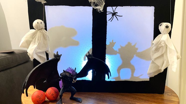Schummriges Licht und gespenstische Figuren: Die perfekte Kombination für Halloween. Die leuchtenden Grusel-Fenster machen auf der Fensterbank so einiges her. Dafür schneiden die Kinder mit einem Cutter vorsichtig ein Fenster aus dem Deckel eines Schuhkartons. Der Rahmen wird nun schwarz angemalt und von der Innenseite wird das Fenster mit Transparentpapier verschlossen. Für den Leucht-Effekt wird eine Lichterkette innen an den Rand des Fensters geklebt. Und schon können die Schattenfledermaus und der Tyrannosaurus Rex hinter dem Fenster ihren Platz einnehmen. Durch die Beleuchtung werden die Figuren als Schatten sichtbar und jagen sicher dem ein oder anderen einen Schreck ein. Ganz nach Belieben kann das Fenster auch noch mit Gespenstern, Kürbissen oder Spinnenweben verziert werden.