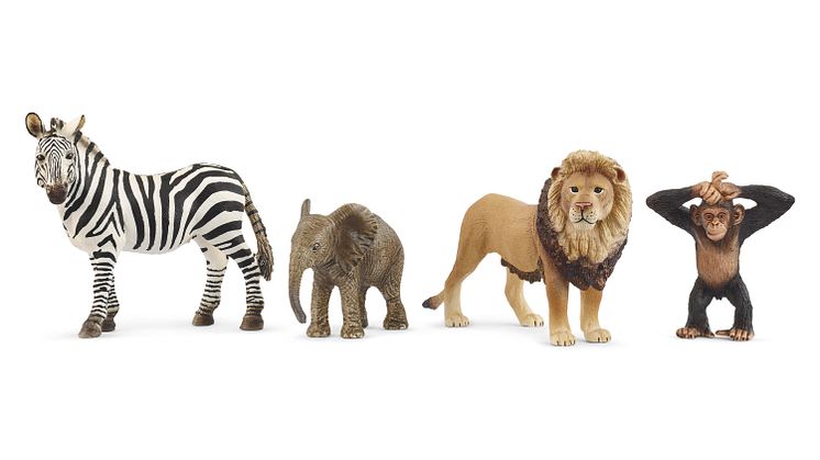 Nanu, da freut sich der Opa ja genauso wie seine Enkelin, kichert der Rauhaardackel. Die beiden sitzen auf der Couch und packen freudig die Geschenke aus WILD LIFE aus. Zebra, Löwe, afrikanisches Elefantenbaby und Schimpanse – beim Anblick der Tiere im Afrika Starter-Set leuchten Opas Augen und er erzählt stolz von seiner Afrika Reise vor zehn Jahren. Die kleine Enkelin bestaunt das Asien Starter-Set und träumt davon, die Tiere einmal in echt sehen zu können. Ich finde, bei den Pinguinen in der Antarktis sieht es viel spaßiger aus, lacht der Rauhaardackel und gesellt sich zu den kleinen Kaiserpinguin Jungen im Spielset Pinguin-Familienspaß. Rutschen, Wippen und Karussellfahren – hier ist richtig was los.