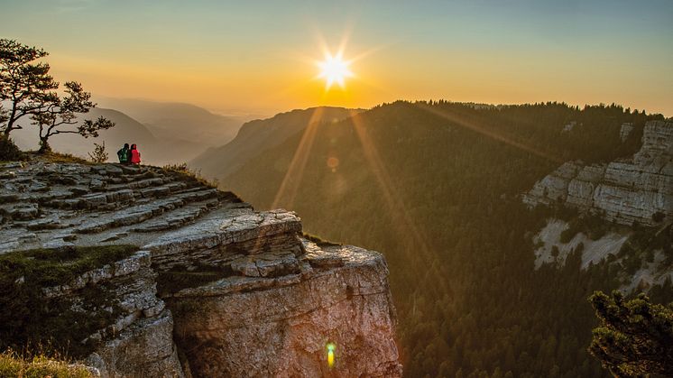 Hinter Aubonne beginnt der Naturpark Jura Vaudois, der durch mystische Moore, zerklüftete Karstfelsen und von Trockensteinmauern umsäumte Weidelandschaften geprägt ist. Sanfte Kurven mit herrlichen Aussichten sorgen für Cruisinggenuss pur. Sie führen zur Schweizer Wiege der Uhrmacherkunst in Le Sentier am Südufer des Lac de Joux. Entlang diesem kaum bekannten Schmuckstück auf 1000 Metern Höhe geht es nach Vallorbe. Aber bevor der Ort erreicht ist, wartet der nächste Pflichtstopp: ein Grottensystem mit Stalaktiten, Stalagmiten und Säulen, Tropfsteingebilden, die vom unterirdischen Flusslauf der Orbe geformt worden sind.