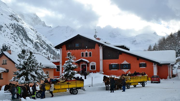 Neben der idyllischen Lage in der Val Roseg mit Blick auf die Sellagruppe und das Bernina-Massiv ist das Hotel Roseg Gletscher insbesondere für sein Dessertbuffet bekannt: Tiramisu, Cremeschnitten, Apfelstrudel oder Engadiner Torten – hier bleiben keine Wünsche offen. Mit den Langlaufskiern erreicht man die Unterkunft mit Einzel-, Doppel- und Mehrbettzimmern ab Pontresina in rund einer Stunde. Wer es gemütlicher mag, reist mit dem Pferdeschlitten an.