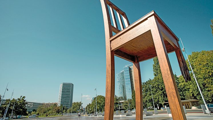 Der Broken Chair wurde 1997 von dem berühmten Bildhauer Daniel Berset geschaffen. Die Skulptur befindet sich auf der Place des Nations und zählt heute zu den symbolträchtigsten Kunstwerken des 21. Jahrhunderts. Das Denkmal erinnert an das Schicksal der Opfer von Landminen und vermittelt die Botschaft, die Staaten dazu zu bewegen, sich für das Verbot von Streubomben einzusetzen. Zur Veranschaulichung dieses Kampfes steht der Broken Chair auf nur drei Beinen, das vierte Bein ist auf halber Höhe abgebrochen. Das Denkmal strahlt mit seiner Höhe von 12 Metern einen gewissen Stolz aus und trägt im Herzen der internationalen Stadt zu Genfs Beitrag zum Weltfrieden bei. www.myswitzerland.com/de-de/erlebnisse/staedte-kultur/kunst-kultur/kunst/broken-chair