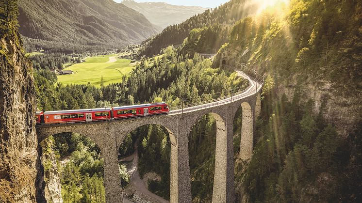Die Rhätische Bahn zwischen Thusis und Tirano ist ein bahntechnisches Meisterwerk. Sie schlängelt sich dank Kunstbauten, Viadukten und Kehrtunnels durchs Gebirge Graubündens. Schluchten, Felsbarrieren und große Steigungen wurden mit dem Bau der Strecke vor über hundert Jahren auf einzigartige Art und Weise überwunden. Harmonisch eingebettet in die wilde Natur, bildet die Bahnlinie heute eine Einheit mit der vielfältigen Kulturlandschaft des Kantons. www.myswitzerland.com/de-de/erlebnisse/rhaetische-bahn-albulabernina, www.rhb.ch
