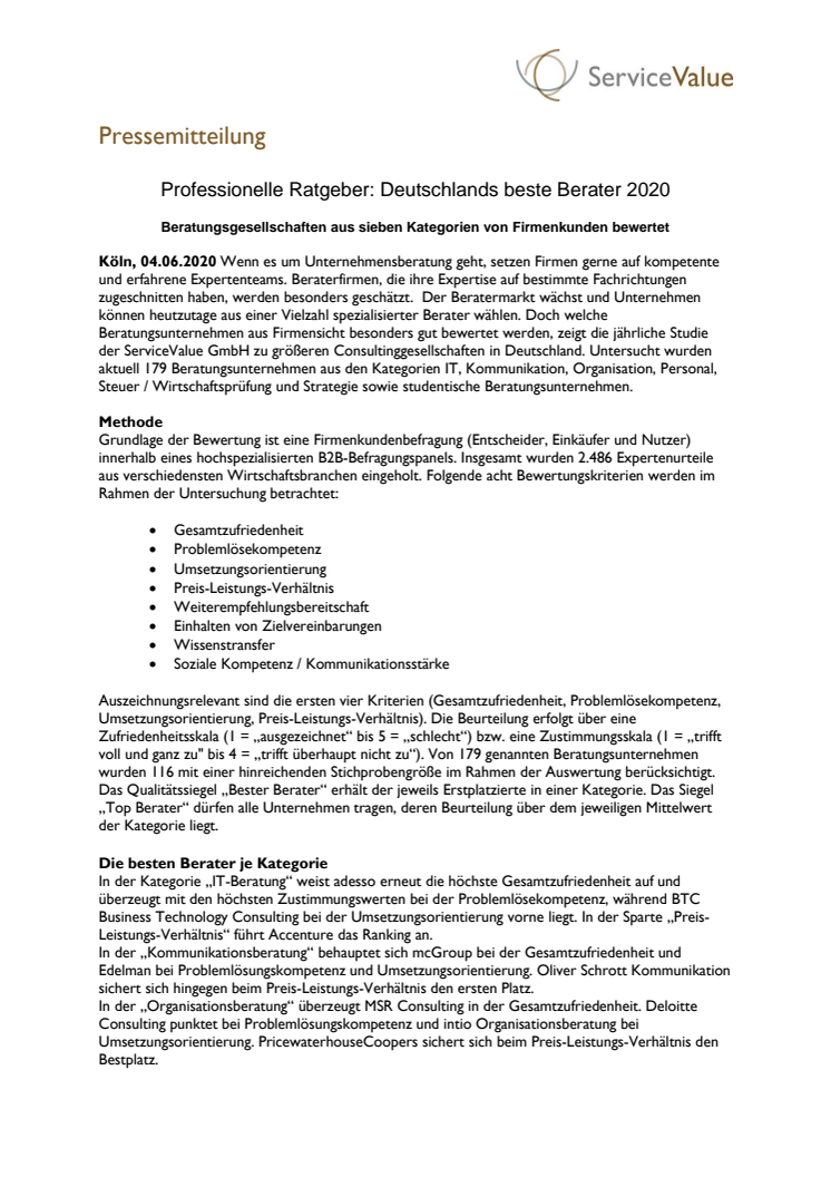 Professionelle Ratgeber: Deutschlands beste Berater 2020