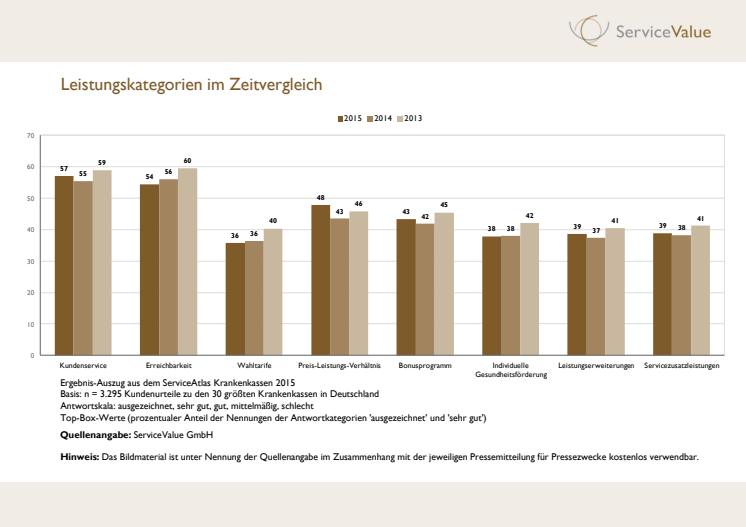 ServiceAtlas Krankenkassen 2015 - Grafik Leistungskategorien im Zeitvergleich