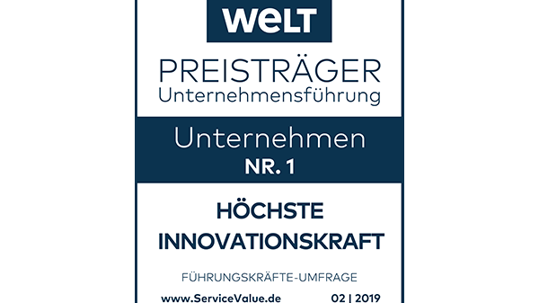Innovation ist ein entscheidendes Kriterium, wenn es um das Wachstum und die Zukunftssicherung geht. Wer im Wettbewerb bestehen will, braucht eine zeitgemäße Managementkultur, die moderne Strukturen, effiziente Prozesse und überzeugende Produkte schafft und vorantreibt. Bei welchen Unternehmen dieses Potenzial auch spürbar nach außen wirkt, hat ServiceValue in Kooperation mit WELT untersucht.