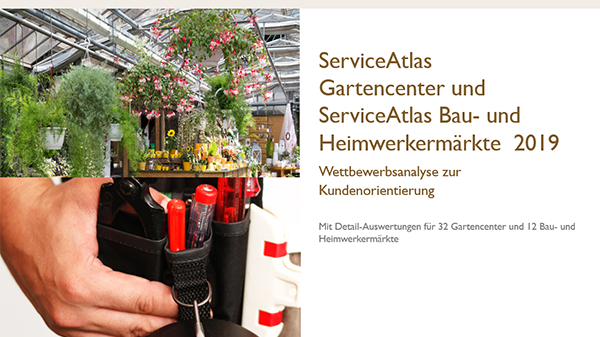 Dies zeigen die aktuellen Neuauflagen der jährlich durchgeführten Kundenbefragungen zum „ServiceAtlas Bau- und Heimwerkermärkte 2019“ und zum „ServiceAtlas Gartencenter 2019“. Hierfür wurden dieses Jahr knapp 3.000 Kundenurteile zu mehr als 30 allgemeinen und 14 branchenspezifischen Leistungsmerkmalen eingeholt.