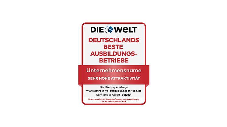 Eine qualifizierte Berufsausbildung kann das Sprungbrett in ein erfülltes Berufsleben und Grundlage für eine erfolgreiche Karriere sein. Voraussetzung dafür sind eine entsprechende Berufseignung und Durchhaltevermögen von Seiten der Auszubildenden sowie Verantwortungsbewusstsein und Kompetenz seitens der Ausbildungsbetriebe. Welche Unternehmen in ihrer Rolle als Ausbilder durch die Bevölkerung als besonders attraktiv wahrgenommen werden, hat das Kölner Analyseinstitut ServiceValue in Kooperation mit der WELT in ihrer Untersuchung „Deutschlands beste Ausbildungsbetriebe 2021“ nun erstmalig und bundesweit erhoben. Insgesamt bewerten Bürgerinnen und Bürger 3.998 Unternehmen aus den Wirtschaftszweigen Dienstleistung, Handel und Industrie hinsichtlich ihrer Attraktivität als Ausbildungsbetriebe.