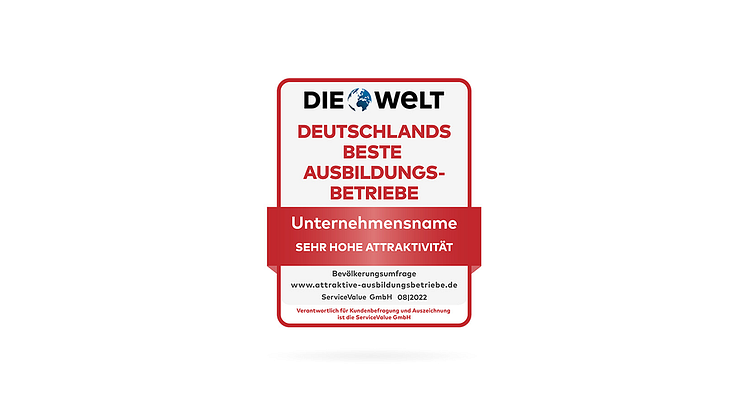 Der beste Weg, beruflich gut qualifizierten Nachwuchs heranzuziehen, ist es, ihn selbst auszubilden. Um die dafür geeigneten, motivierten Bewerberinnen und Bewerber zu gewinnen, müssen ausbildende Unternehmen jedoch zunächst einmal auf sich aufmerksam machen. Welche Unternehmen in ihrer Rolle als Ausbilder durch die Bevölkerung als besonders attraktiv wahrgenommen werden, hat die Kölner Rating- und Rankingagentur ServiceValue in Kooperation mit der WELT in ihrer Untersuchung „Deutschlands beste Ausbildungsbetriebe 2022“ zum zweiten Mal und bundesweit erhoben. Insgesamt 3.984 Unternehmen aus den Wirtschaftszweigen Dienstleistung, Handel und Industrie wurden dafür hinsichtlich ihrer Attraktivität als Ausbildungsbetriebe bewertet.
