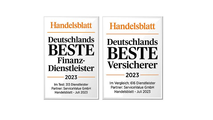 Der Dienstleistungssektor ist einer der größten und am schnellsten wachsenden Wirtschaftsbereiche in Deutschland und umfasst unter anderem auch das Finanz- und Versicherungswesen. Welche Dienstleister in diesen Branchen von ihren Kundinnen und Kunden als besonders gut gewertet werden, hat die Rating- und Rankingagentur ServiceValue in Kooperation mit dem Handelsblatt für die Studienreihe „Deutschlands beste Dienstleister“ anhand von breit angelegten Kundenbefragungen untersucht. Aus dem Finanzwesen wurden 313 Dienstleister aus 17 Kategorien bewertet, aus dem Versicherungswesen 616 Dienstleister aus 21 Kategorien. Dabei sind Mehrfachplatzierungen möglich.
