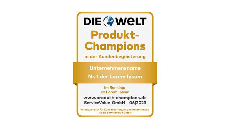 Die Produkt-Champions sind Teil der Studienreihe „Deutschlands Champions in der Kundenbegeisterung“, in der unterjährig neben Kundenurteilen zu Produkten auch Scores für Service, Marke, Preis, Filiale und Digitalisierung erfasst werden. Alle Untersuchungen der Reihe werden in Kooperation mit der überregionalen Tageszeitung DIE WELT durchgeführt. Das vollständige Ranking der „Produkt-Champions 2023“ finden Sie unter: www.produkt-champions.de