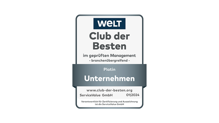 Unternehmen, die ihre Kunden begeistern, Experten überzeugen und auf dem Markt Maßstäbe setzen, verdienen sich einen Platz im exklusiven „Club der Besten“. Die Ermittlung erfolgt anhand von Kundenurteilen und Experten-Audits durch die Kölner Rating- und Rankingagentur ServiceValue in Kooperation mit der Goethe-Universität Frankfurt am Main und WELT. Die Mitgliedschaft in diesem Jahr erlangen der Fertighausanbieter SchwörerHaus, der Finanzdienstleister Telis Finanz, der Möbelhändler Segmüller und die WWK Versicherungsgruppe.