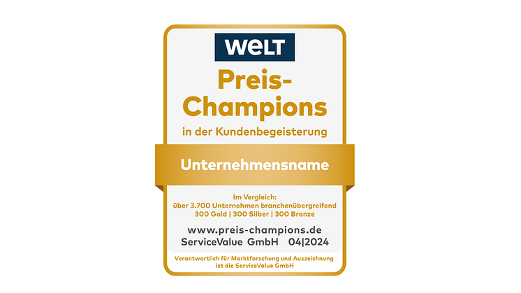 Anders als so manche Werbeaktion betreffen die Preise, die ein Unternehmen setzt, ausnahmslos jeden Kunden und jede Kundin. Welche Anbieter mit ihrer Preisgestaltung begeistern, hat die wirtschaftspsychologische Rating- und Rankingagentur ServiceValue in Kooperation mit WELT auch in diesem Jahr in ihrer regelmäßigen Untersuchung „Preis-Champions“ untersucht. Das dazugehörige Ranking basiert 2024 auf einem Vergleich von 3.726 Unternehmen aus 286 Kategorien.