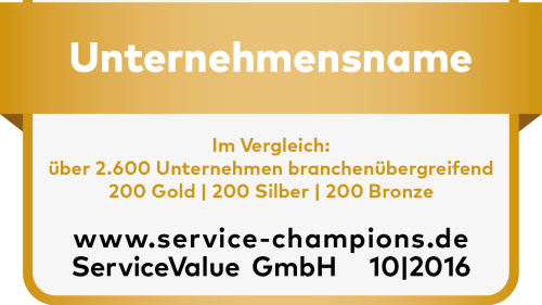 Die Ermittlung der „Service-Champions“ in Deutschlands größtem Service-Ranking erfolgt allein über Kundenurteile. Die Untersuchung erfolgt in Kooperation mit der überregionalen Tageszeitung DIE WELT und der Goethe-Universität Frankfurt am Main. Jeweils 200 Unternehmen werden in einem Gold-, Silber- und Bronze-Rang geführt, die 304 Branchengewinner werden separat ausgewiesen. Das komplette Ranking finden Sie unter: www.service-champions.de.