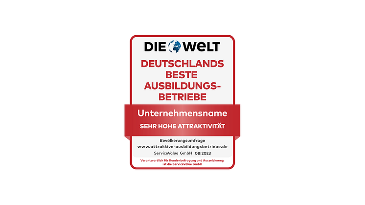 Welche Unternehmen in ihrer Rolle als Ausbilder im Allgemeinen als besonders attraktiv wahrgenommen werden, hat die Kölner Rating- und Rankingagentur ServiceValue in Kooperation mit der WELT in ihrer Untersuchung „Deutschlands beste Ausbildungsbetriebe 2023“ zum dritten Mal und bundesweit erhoben.