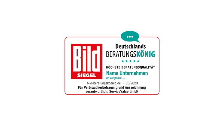 Welche Unternehmen mit besonders hoher Beratungsqualität überzeugen, hat die Kölner Rating- und Rankingagentur ServiceValue in Kooperation mit der BILD Zeitung in der Studie „DEUTSCHLANDS BERATUNGSKÖNIGE“ untersucht.