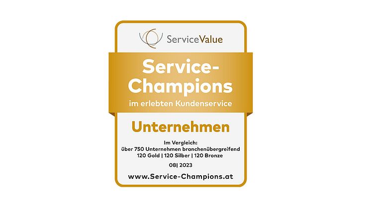 Welche Unternehmen in besonderem Maße mit ihren Serviceleistungen überzeugen, zeigen die „Service-Champions Österreich 2023“, die von der Rating- und Rankingagentur ServiceValue im inzwischen neunten Jahr in Folge ermittelt wurden.