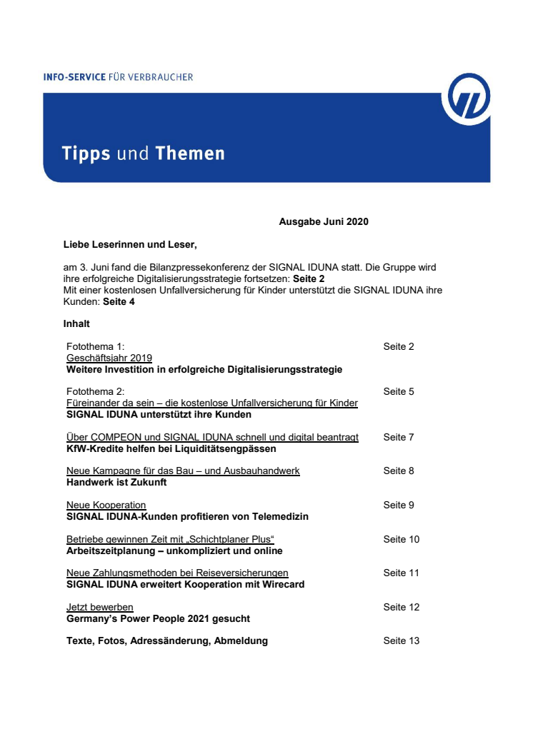Am 3. Juni fand die Bilanzpressekonferenz der SIGNAL IDUNA statt. Die Gruppe wird ihre erfolgreiche Digitalisierungsstrategie fortsetzen: