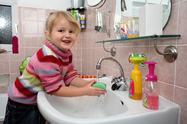 Neben ausreichender Vitaminzufuhr und Bewegung an frischer Luft gehört das Händewaschen zu den wirksamsten Vorbeugemaßnahmen gegen Schnupfen und Co. Gründliches Händewaschen dauert mindestens 20 Sekunden. Dabei nicht die Fingerzwischenräume vergessen und darauf achten, die Hände anschließend sorgfältig abzutrocknen. Auch hier gilt die Devise: Früh übt sich …