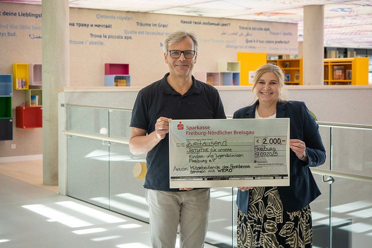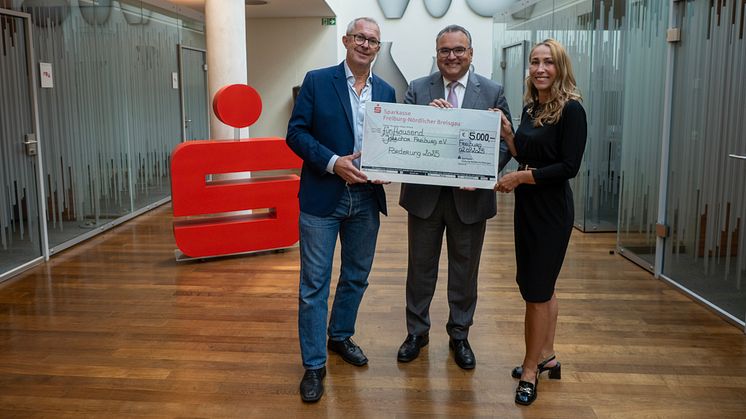 Die Sparkasse Freiburg-Nördlicher Breisgau unterstützt Jazzchor Freiburg mit 5.000 Euro. „Musik ist eine Brücke, die Menschen zusammenbringt“, erklärte der Sparkassen-Vorstandsvorsitzende Daniel Zeiler bei der Übergabe. „Deshalb unterstützen wir gerne den Jazzchor Freiburg, dessen außergewöhnliche Arbeit weit über die Region hinaus Anerkennung findet.“
