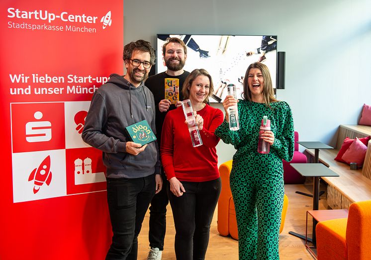V.l.: Martin Grellner, Gründer djoon, Leon Niedler, Gründer djoon, Carolin Grellner, Gründerin djoon und Magdalena Jüngst, Gründerin Air up.