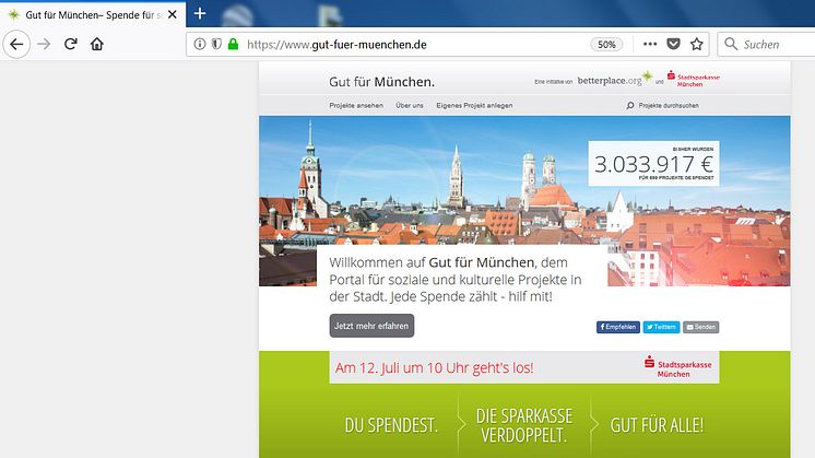 Auf diesem Online-Portal bringen die Stadtsparkasse München und betterplace.org, Deutschlands größte Spendenplattform, Münchner Hilfsprojekte und Spender im Internet zusammen. Die Nutzung der Plattform ist sowohl für die Projektverantwortlichen als auch für die Spender kostenfrei. Möglich ist dies, da die Stadtsparkasse München die kompletten Kosten für den Portalbetrieb übernimmt. Die Spenden kommen so ohne jeden Abzug zu 100 Prozent den projekttragenden Organisationen zugute.