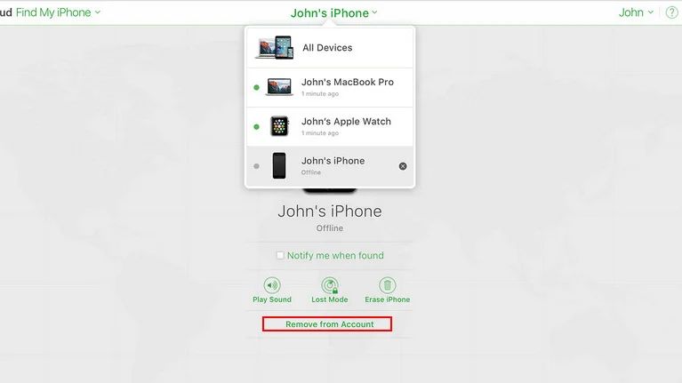 Wählen Sie „Mein iPhone suchen“ und klicken Sie auf das gesperrte iPhone in der Geräteliste.