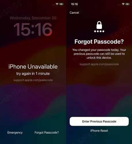 Ab iOS 17 hat Apple eine Funktion eingeführt, die das Entsperren erleichtert, wenn Sie Ihren alten PIN noch kennen. Haben Sie Ihren iPhone PIN vergessen, aber kürzlich geändert, können Sie Ihr iPhone 17 trotzdem mit dem zuvor gesetzten PIN entsperren.