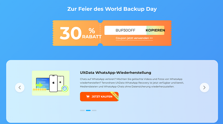 Nehmen Sie jetzt am 4DDiG World Backup Day teil und erhalten Sie 30 % Rabatt auf alle 4DDiG-Computerprogramme, auch auf Tenorshare Ultdata-Apps.