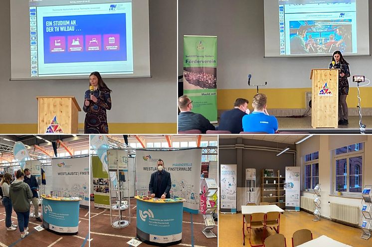 Impressionen der Karrieremessen im Evangelischen Gymnasium Doberlug-Kirchhain und in der Senftenberger Niederlausitzhalle, auf denen sich das Team der Präsenzstelle Westlausitz | Finsterwalde präsentierte.