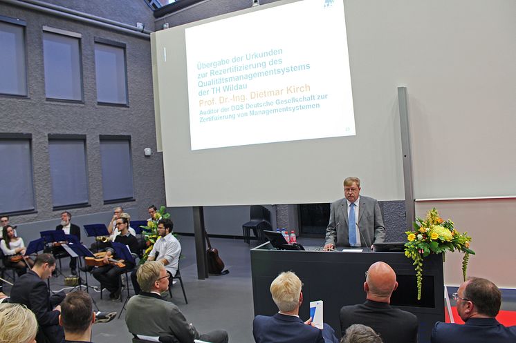 Im Rahmen eines Festaktes wurden am Freitag, dem 16. Oktober 2015, die Absolventinnen und Absolventen der Technischen Hochschule Wildau des Akademischen Jahres 2014/2015 feierlich verabschiedet. Prof. Dr.-Ing. Dietmar Kirch, Auditor der DQS Deutsche Gesellschaft zur Zertifizierung von Managementsystemen, übergab die Urkunden zur Rezertifizierung des