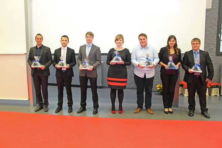 Im Rahmen eines Festaktes wurden am Freitag, dem 16. Oktober 2015, die Absolventinnen und Absolventen der Technischen Hochschule Wildau des Akademischen Jahres 2014/2015 feierlich verabschiedet. Das Foto zeigt Beststudierende aus dem Fachbereich Wirtschaft, Informatik, Recht.