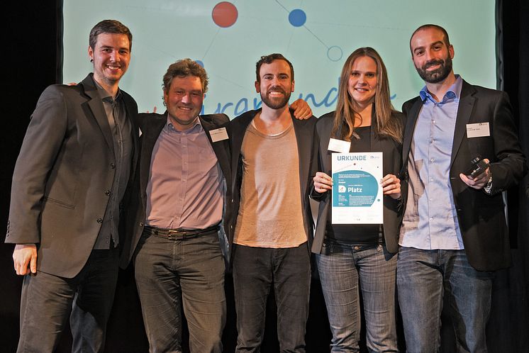 Das vom Gründungsservice der TH Wildau betreute Team „Oculyze“ hat in der zweite Stufe des Businessplan Wettbewerbs Berlin-Brandenburg 2016 (BPW) den 1. Platz in der Kategorie „BPW Plan“ belegt: Dr. Ulrich Tillich, Dr. Katja Schulze, Kilian Moser, Prof. Dr. Marcus Frohme (Wissenschaftlichen Beirat) und Martin Kluth (v.r.n.l.).