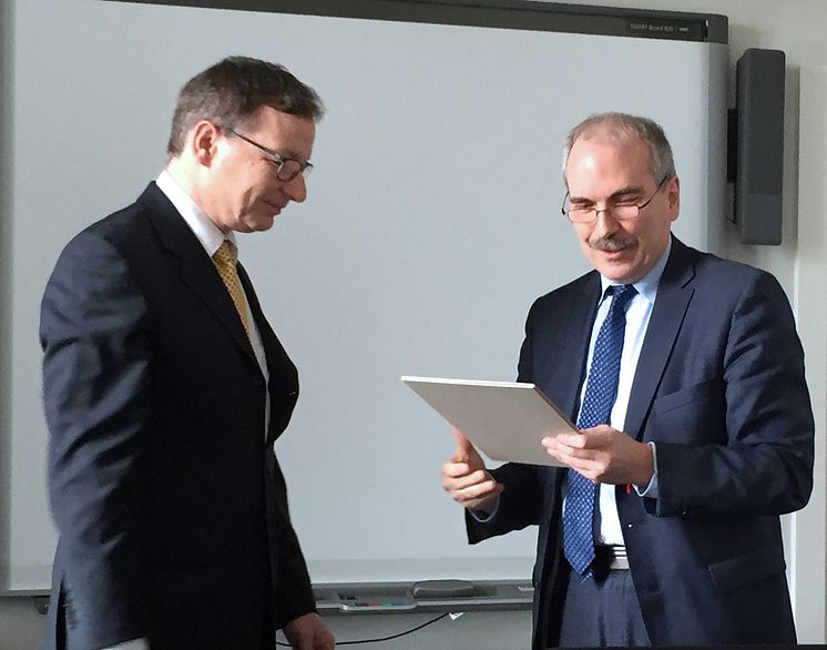 Brandenburgs Wissenschaftsstaatssekretär Martin Gorholt hat am 25. Februar 2016 in Potsdam drei neuen Professoren des Fachbereichs Ingenieur- und Naturwissenschaften (INW) der Technischen Hochschule Wildau die Ernennungsurkunden überreicht:
