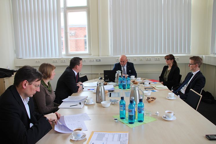 Kanzler Thomas Lehne, Katharina Branske, Dekan Prof. Dr. Bertil Haack, TH-Präsident Prof. Dr. László Ungvári, Staatssekretärin Katrin Lange, MIK-Referent Felix Schrandt (v.l.).