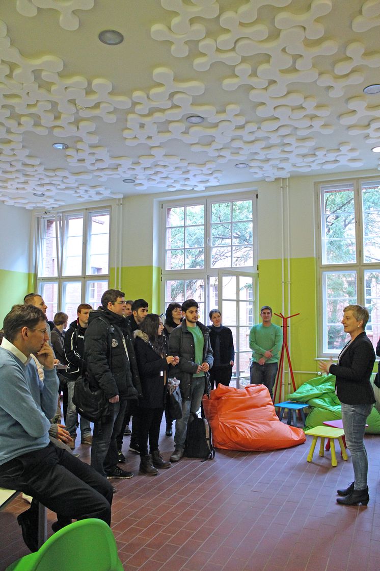 Auf dem Campus der Technischen Hochschule Wildau wurde am 16. Dezember 2015 ein neuer Aufenthaltsraum für Studierende, Lehrende sowie Mitarbeiterinnen und Mitarbeiter eröffnet. Nach mehrwöchigen Umbauarbeiten konnte Prof. Dr. Ulrike Tippe (r.), Vizepräsidentin für Studium, Lehre und Qualität, den Raum 029 im Haus 13 seiner neuen Bestimmung übergeben.