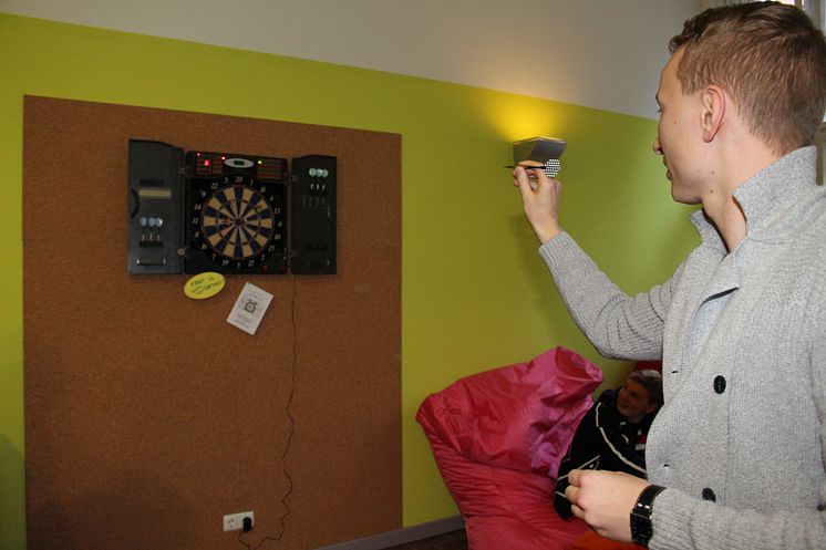 Auf dem Campus der Technischen Hochschule Wildau wurde am 16. Dezember 2015 ein neuer Aufenthaltsraum für Studierende, Lehrende sowie Mitarbeiterinnen und Mitarbeiter eröffnet. Für Möglichkeiten zur aktiven Entspannung sorgt eine elektronische Dartscheibe.