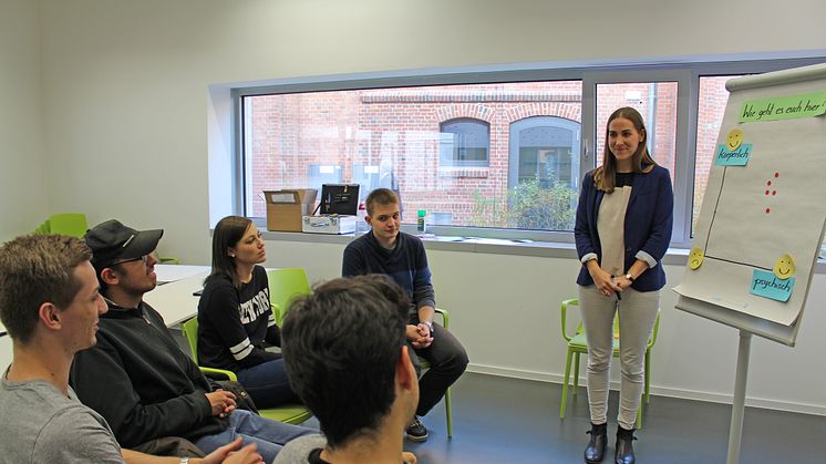 Im Rahmen des Gemeinschaftsprojektes der TH Wildau mit der Techniker Krankenkasse (TK) "Hochschule in Hochform" finden zurzeit Diskussionsrunden mit Studierenden zum Thema „Gesundheit und gesundes Studieren” statt. Ziel solcher Gespräche in so genannten Fokusgruppen ist es, die aktuelle Gesundheits- und Studiensituation zu analysieren und Hinweise oder Vorschläge zu erhalten, wie ein gutes und gesundes Studium aus der Sicht der Studierendenschaft aussehen sollte. Moderatorin ist Janika Mette, Praktikantin der TK aus Hamburg.