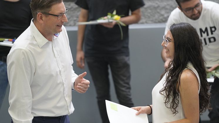 Am 6. Juli 2022 fand an der TH Wildau die feierliche Zeugnisverleihung für die internationalen Teilnehmerinnen und Teilnehmer des Studienvorbereitungsprogramms „Wildau Foundation Year“ statt. Insgesamt 34 Interessierte aus 17 Ländern hatten 2021/2022 an dem Programm teilgenommen, 28 von ihnen haben die Fachprüfungen erfolgreich bestanden – ein weiterer Schritt auf dem Weg ins Studium.