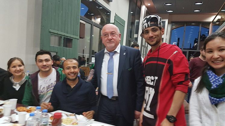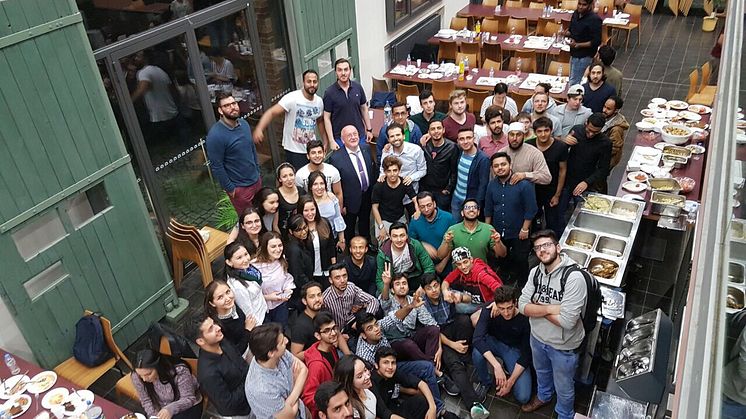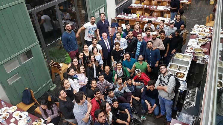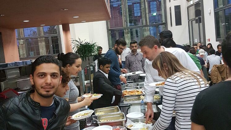 Es wird offenbar eine gute Tradition auf dem Campus der Technischen Hochschule Wildau: Muslime und Nichtmuslime treffen sich im islamischen Fastenmonat Ramadan zu einem gemeinsamen Fastenbrechen. Am Freitag, dem 16. Juni 2017, pünktlich um 21:31 Uhr - dem offiziellen Sonnenuntergang - war es wieder soweit. Rund 100 Studierende und Gäste versammelten sich zum abendliche Abschluss des Fastentages. Unter ihnen waren auch zahlreiche deutsche Studierende und Lehrende sowie weitere Mitarbeiterinnen und Mitarbeiter der Hochschule. TH-Präsident Prof. Dr. László Ungvári bedankte sich in einer kurzen Ansprache für die Einladung. Die Veranstaltung, die bereits zum dritten Mal stattfand, sei eine Bereicherung für das Campusleben und fördere das Verständnis zwischen den Kulturen.