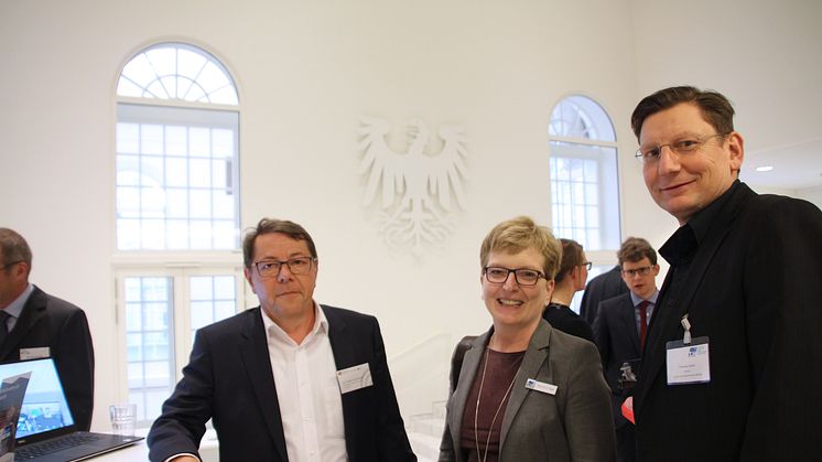 Die Technische Hochschule Wildau war auch in diesem Jahr wieder Akteur beim Parlamentarischen Abend des Vereins proWissen Potsdam und der Landesvereinigung außeruniversitärer Forschung in Brandenburg. Im Brandenburgischen Landtag präsentierten Dr. Frank Hartmann und Marko Berndt von der Forschungsgruppe Innovations- und Regionalforschung am 26. April 2018 im Themenschwerpunkt „Arbeitswelten der Zukunft“ das Projekt Projekt "Mittelstand-4.0-Kompetenzzentrum IT-Wirtschaft" (https://itwirtschaft.de/).