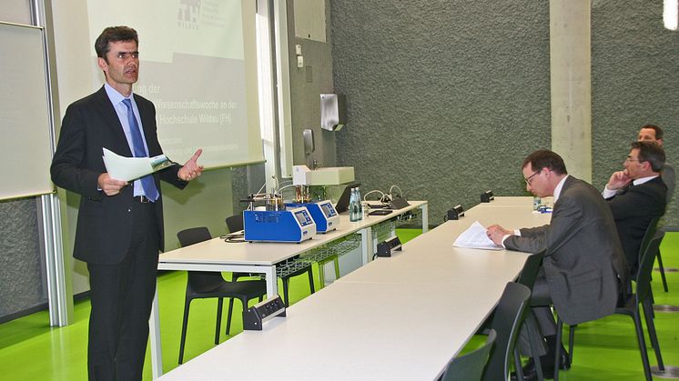 Am Montag, dem 9. März 2015, eröffnete Prof. Dr. Ralf Vandenhouten, Vizepräsident für Forschung und Unternehmenskontakte die 4. Wissenschaftswoche an der Technischen Hochschule Wildau. Daran nahmen rund 50 Hochschulangehörige sowie Interessentinnen und Interessenten aus der Hochschulstadt Wildau und der Region Dahme-Spreewald teil.