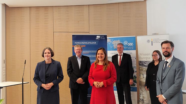 Unternehmen und Wissenstransfer – mit diesen Zielen haben die Europa-Universität Viadrina Frankfurt (Oder) und die Technische Hochschule Wildau am Donnerstag, dem 17. September, ihre Präsenzstelle in Fürstenwalde eröffnet. Brandenburgs Wissenschaftsministerin Dr. Manja Schüle überreichte zur Eröffnung den Zuwendungsbescheid an Prof. Dr. Julia von Blumenthal, Präsidentin der Europa-Universität Viadrina, und Prof. Dr. Klaus-Martin Melzer, Vizepräsident für Forschung und Transfer der TH Wildau.