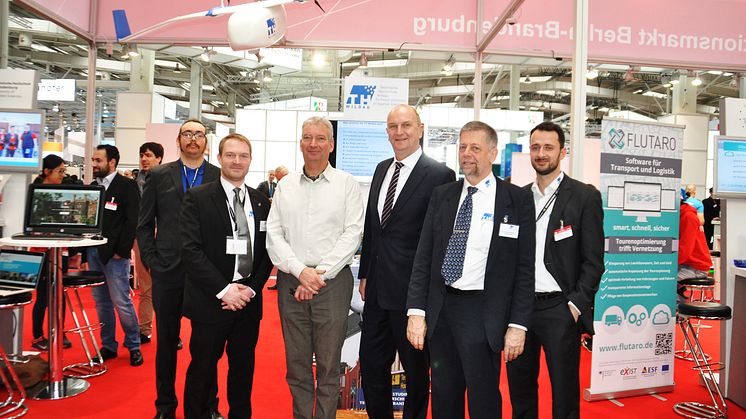 Die Forschungsarbeiten der TH-Arbeitsgruppe Luftfahrttechnik unter Leitung von Prof. Dr.-Ing Wolfgang Rüther-Kindel auf dem Gebiet „Drohnen für zivile Anwendungen“ fanden auch das Interesse des Ministerpräsidenten des Landes Brandenburg, Dr. Dietmar Woidke. Auf dem CeBIT-Stand der TH Wildau in der Halle 6 informierte er sich bei einem Messerundgang insbesondere über ein neues Projekt zum Einsatz solcher unbemannten Fluggeräte für die luftgestützte Agrardiagnose. Die Drohne mit modernen optischen Sensoren und spezieller Auswertesoftware soll Landwirten durch eine übersichtliche Auswertung eine effizientere Bearbeitung ihrer Ackerschläge ermöglichen.
