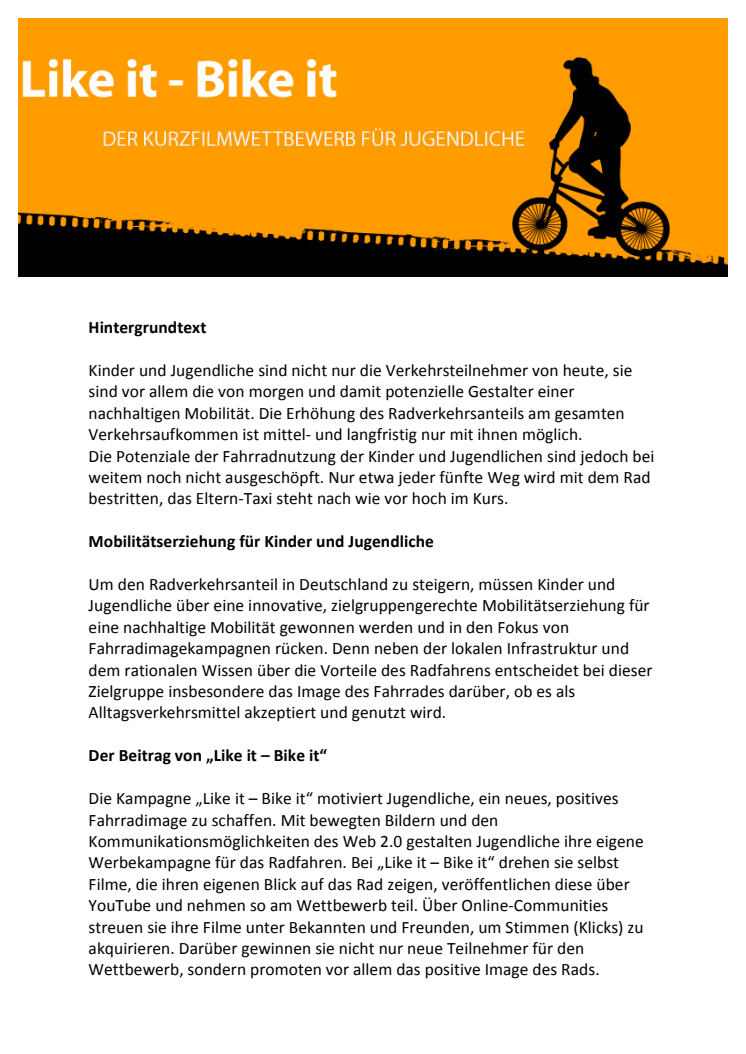 Hintergrundtext zum Kurzfilmwettbewerb "Like it - Bike it"