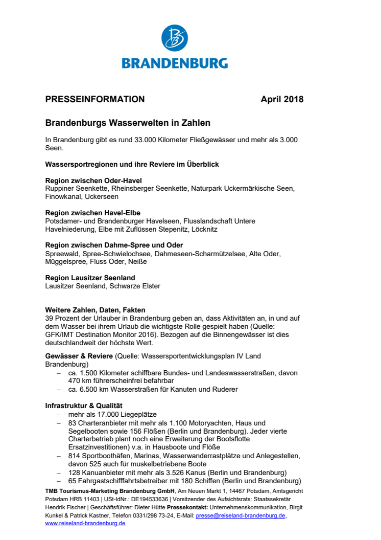 Brandenburgs Wasserwelten - Zahlen, Daten, Fakten zum Wassertourismus