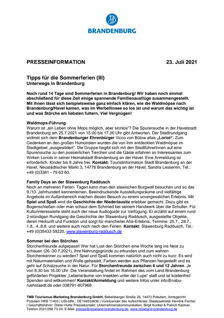 Noch rund 14 Tage sind Sommerferien in Brandenburg! Wir haben noch einmal abschließend für diese Zeit einige spannende Familienausflüge zusammengestellt.