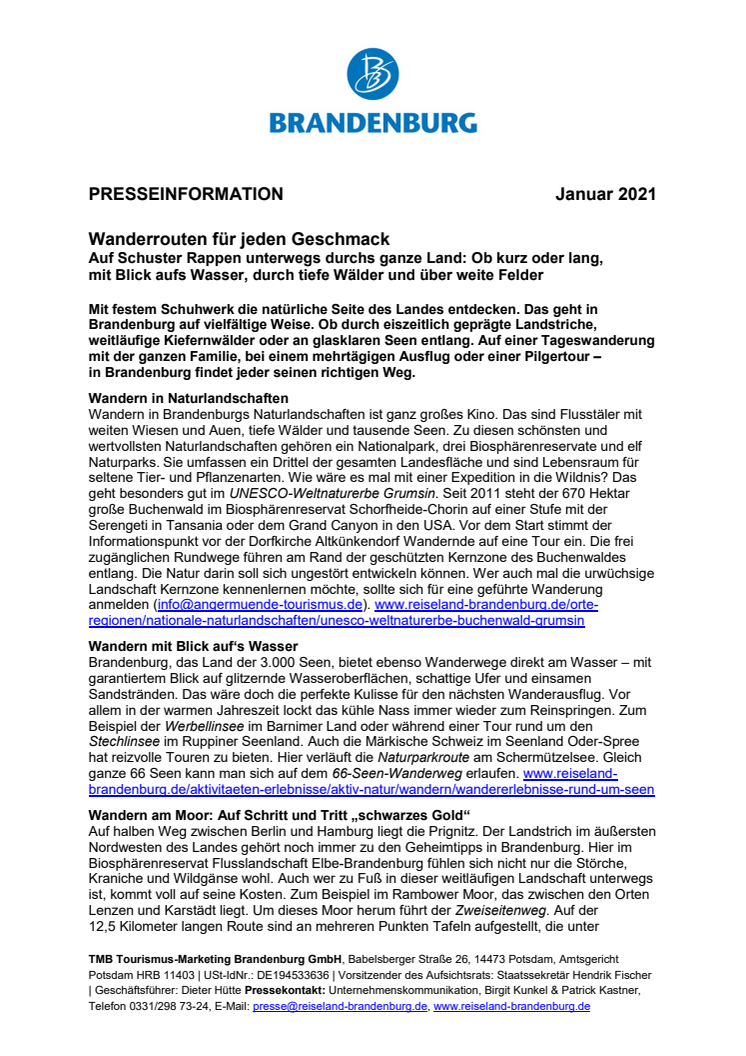 Mit festem Schuhwerk die natürliche Seite des Landes entdecken. Das geht in Brandenburg auf vielfältige Weise. Ob durch eiszeitlich geprägte Landstriche, weitläufige Kiefernwälder oder an glasklaren Seen entlang. Auf einer Tageswanderung mit der ganzen Familie, bei einem mehrtägigen Ausflug oder einer Pilgertour –